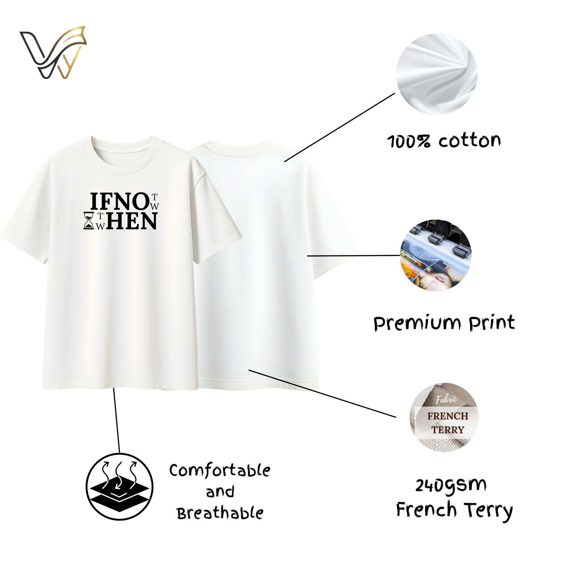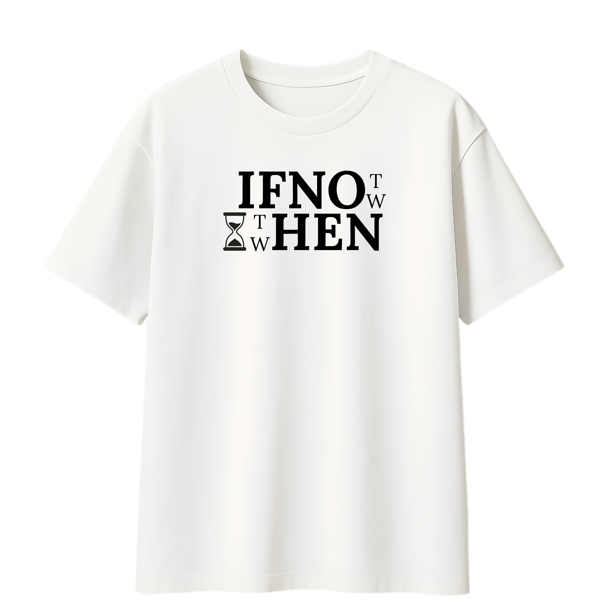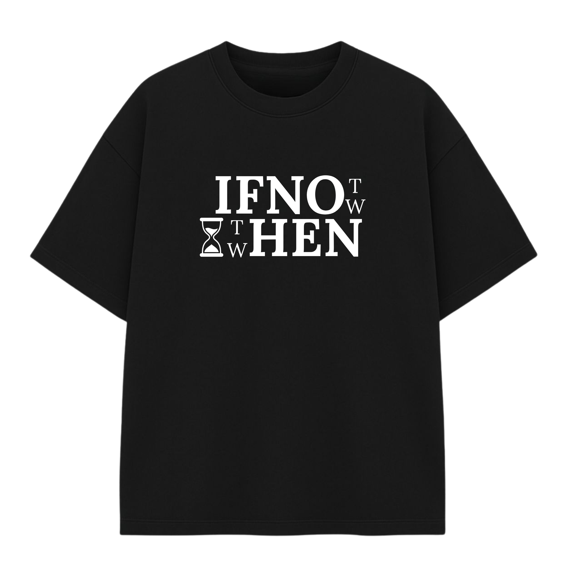 The IF NOT NOW THEN WHEN oversized tee is made for doers. Featuring bold, statement typography with a subtle hourglass graphic, this design is a daily reminder that the perfect time doesn’t exist. The time is now.