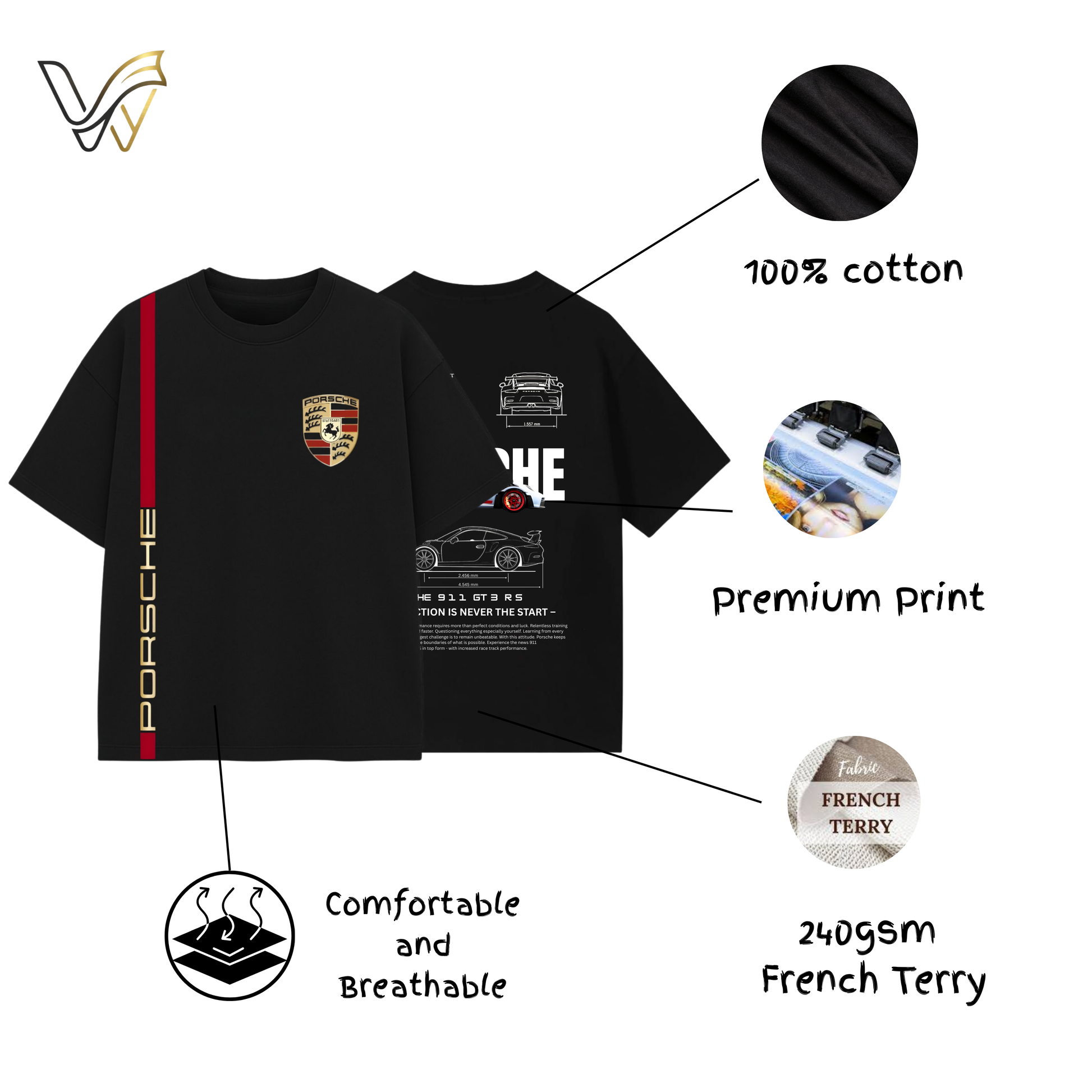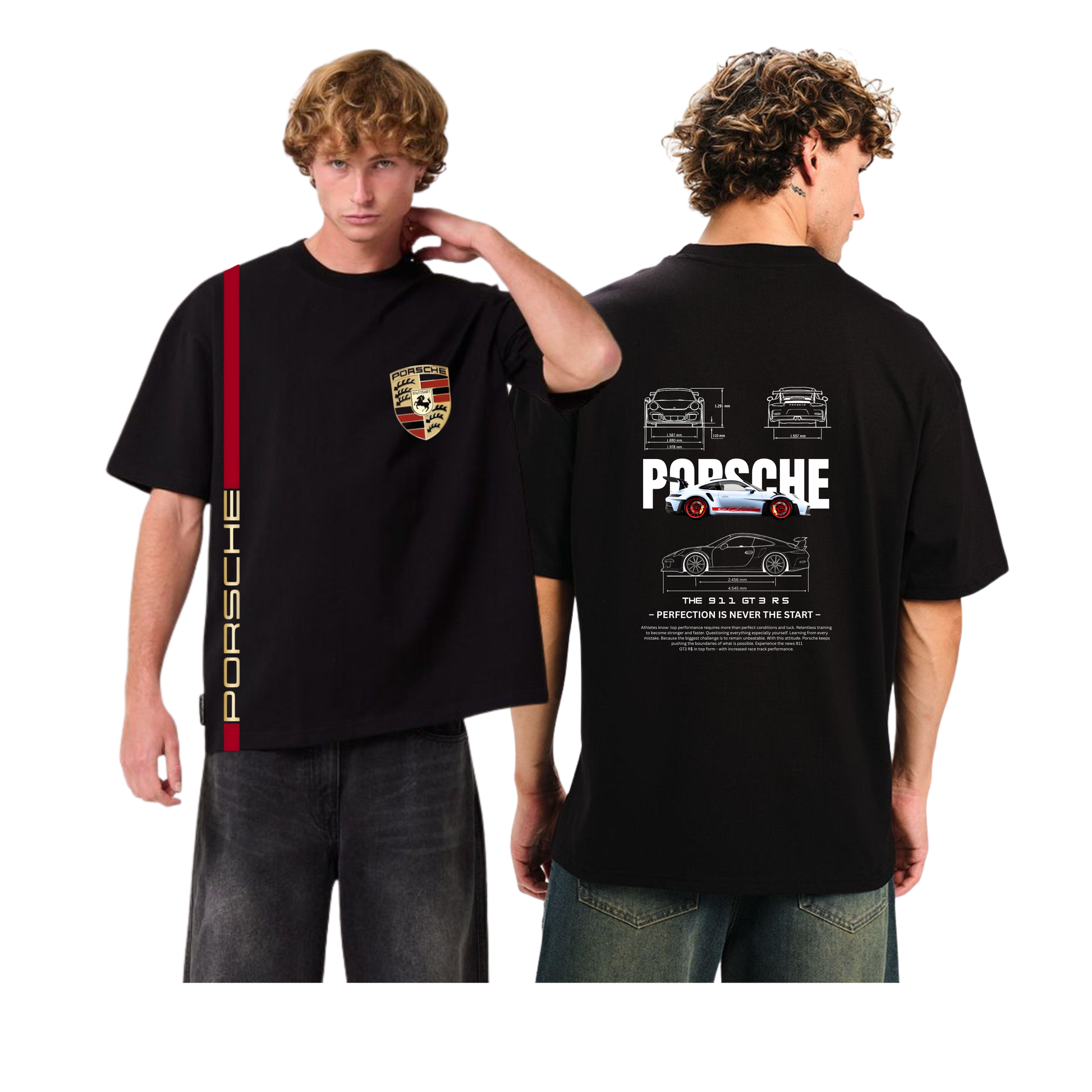 Celebrate the legacy of the 911 GT3 RS with a design that bridges the gap between automotive excellence and modern streetwear. This isn't just a t-shirt; it’s a tribute to the "Perfection is never the start" philosophy that defines every Porsche.